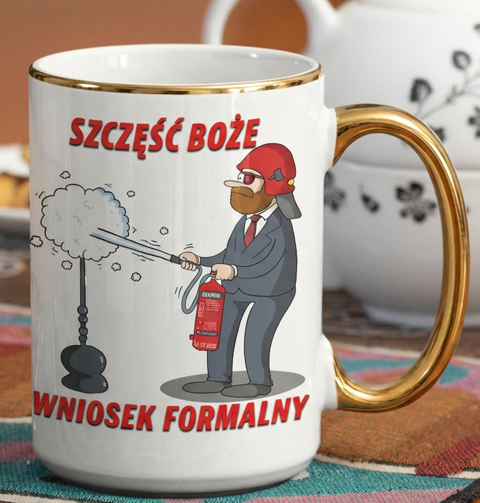 Ten kubek powstał na drugą rocznicę –> 12 grudnia 2023 roku, data ta na zawsze pozostanie w naszej pamięci. To niecodzienne wydarzenie pokazało nam wiele. Gaśnica stała się symbolem polskich patriotów, ludzi, którzy nie boją się wyrażać jasno swoich poglądów i stawać w obronie prawdy. To świadectwo odwagi i niezłomności tych, którzy nie boją się walczyć o wolność i sprawiedliwość, oraz o prawdę! Ten Kubek powstał jako upamiętnienie pierwszej rocznicy tego niecodziennego wydarzenia!