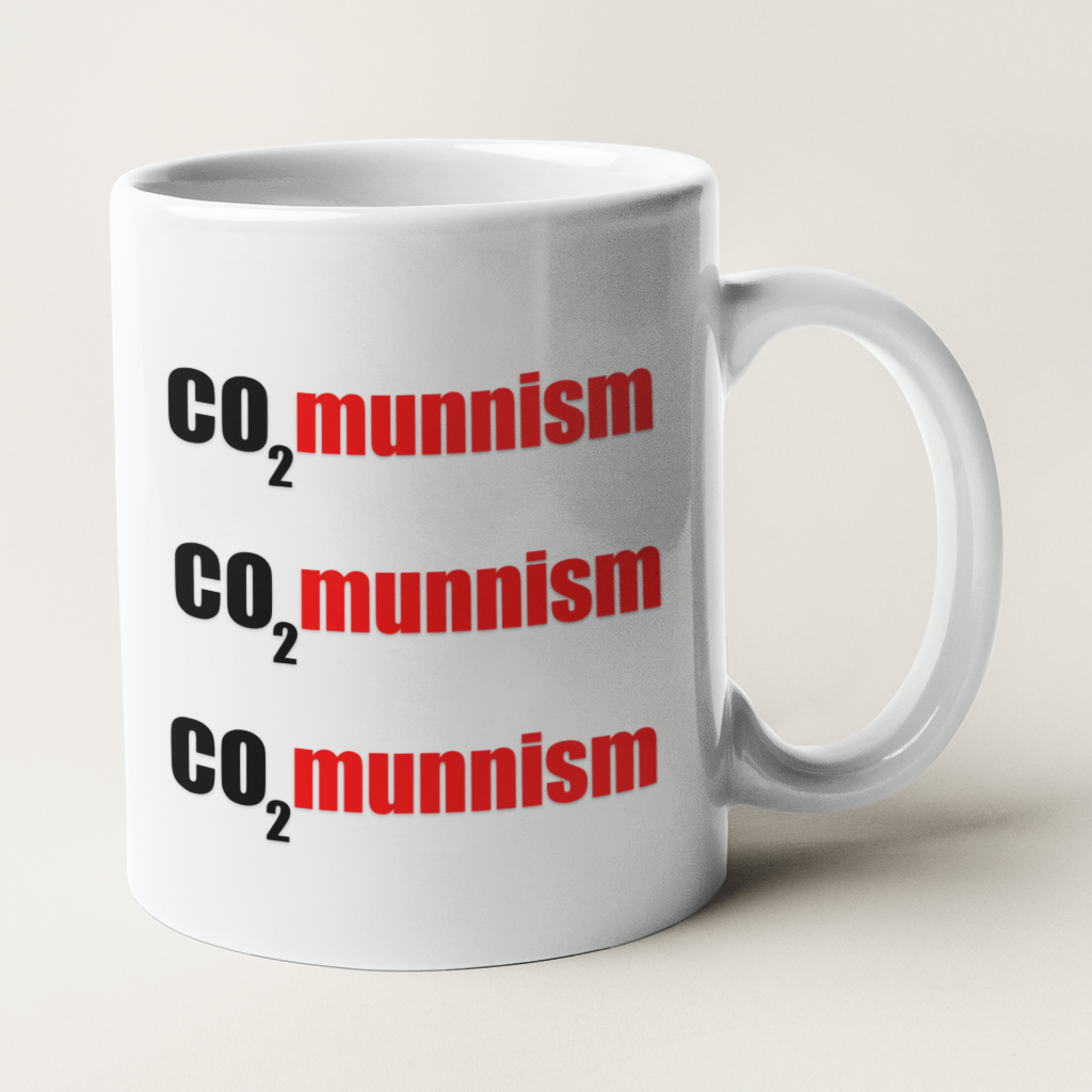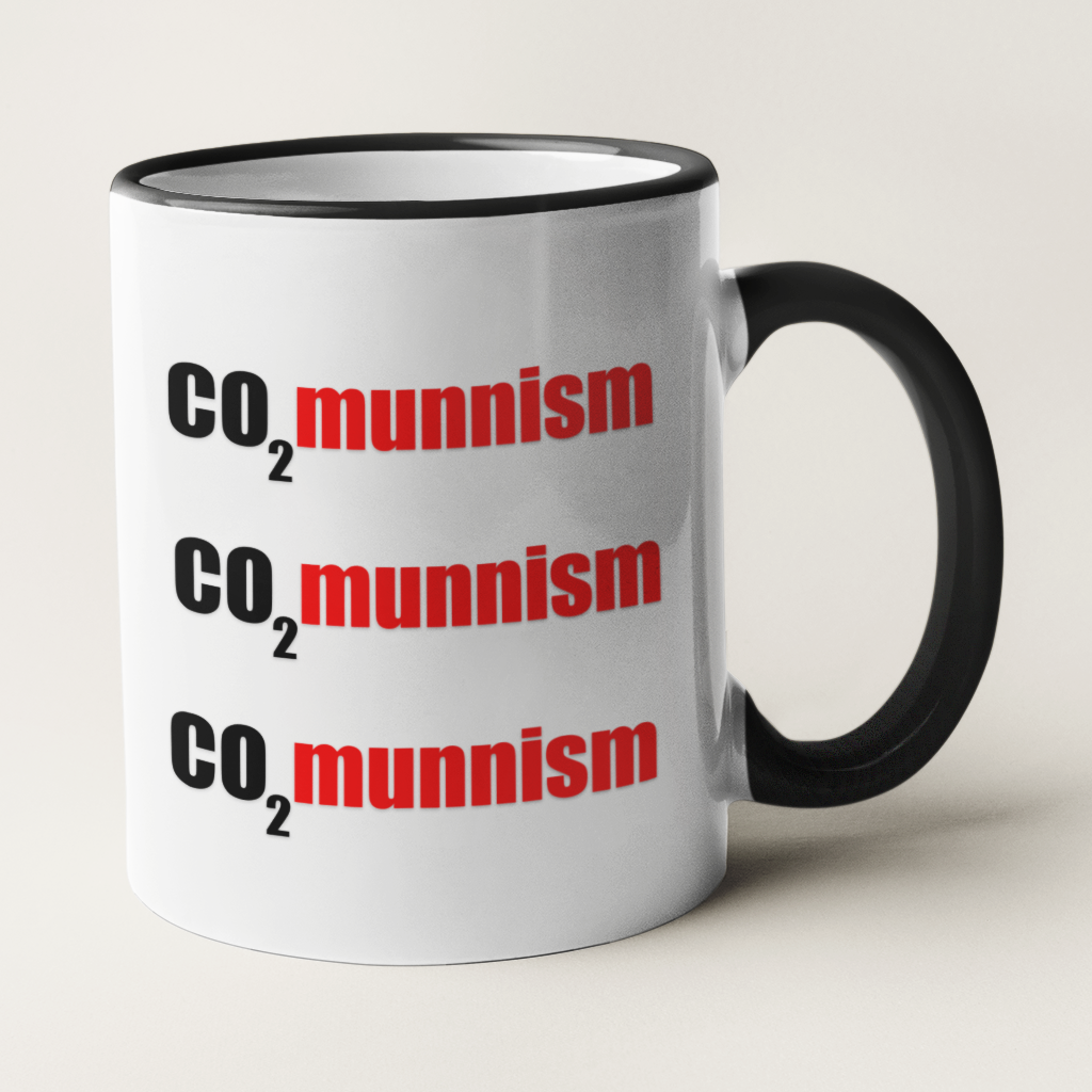Kubek “CO2munnism” jest wyrazistym protestem przeciwko zasadom Zielonego Ładu oraz opłatom za emisję dwutlenku węgla.